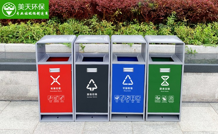 - 說明: 說明:這一款戶外垃圾桶選用優質鍍鋅鋼板裁剪、壓制、折彎后再焊接而成型;頂部弧度設計,推拉開門設計,單桶組合擺放,可定制LOGO絲印。